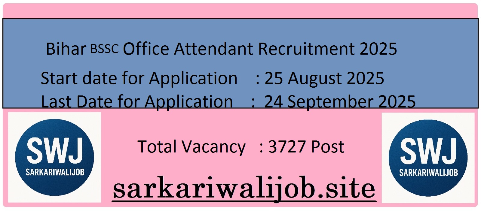 Bihar BSSC Office Attendant Recruitment Apply for 3727 Post In 2025 |