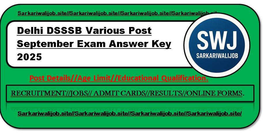 | Short details about the exam : | Delhi DSSSB June 2025 Various Post Exam Answer Key: Delhi Subordinate Service Selection Board Recruitment had invited online applications for the DSSSB Various Post exam, in which many candidates had applied online till the last date and now soon DSSSB June 2025 Exam Answer Key will also be issued on Official Website. Candidates are advised to regularly check the official website for the latest updates regarding the Vacancy 2025. Key details are given below. SarkariWaliJob.site |