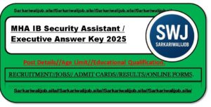 | Short details about the exam : | MHA IB SA/Executive Answer Key2025 Official Notification is released and Online Form Now Started on 26 July 2025 to 17 August 2025 is Last Date for IB Security Assistant SA / Executive Post Examination, Vacancy 2025 Candidates are advised to regularly check the official website for the latest updates regarding the Vacancy 2025. Key details are given below. SarkariWaliJob.site | ||||||