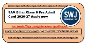 SAV Bihar Class 6 Pre Admit Card 2026-27 – OutSAV Class VI Admission Online (Session: 2026-27All information are given below as per exam notification |